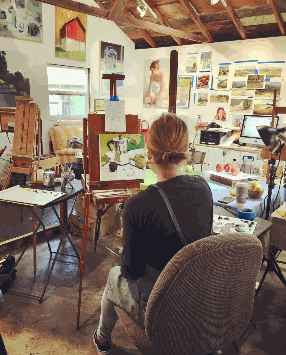 My number one piece of advice is to keep going. We all get discouraged, I still do, and that is an appropriate feeling that is part of the learning process, as it should be across the board, in any field. I always compare painting to playing a musical instrument. You have to practice every day, even when you are at the top of your game, musicians are still picking up their tools daily, practicing. The same goes for painting. And carve out a space to be creative in, that allows you to leave all of your materials out and in the open, maybe messy if you’d like, that you can walk away from when you need a break!