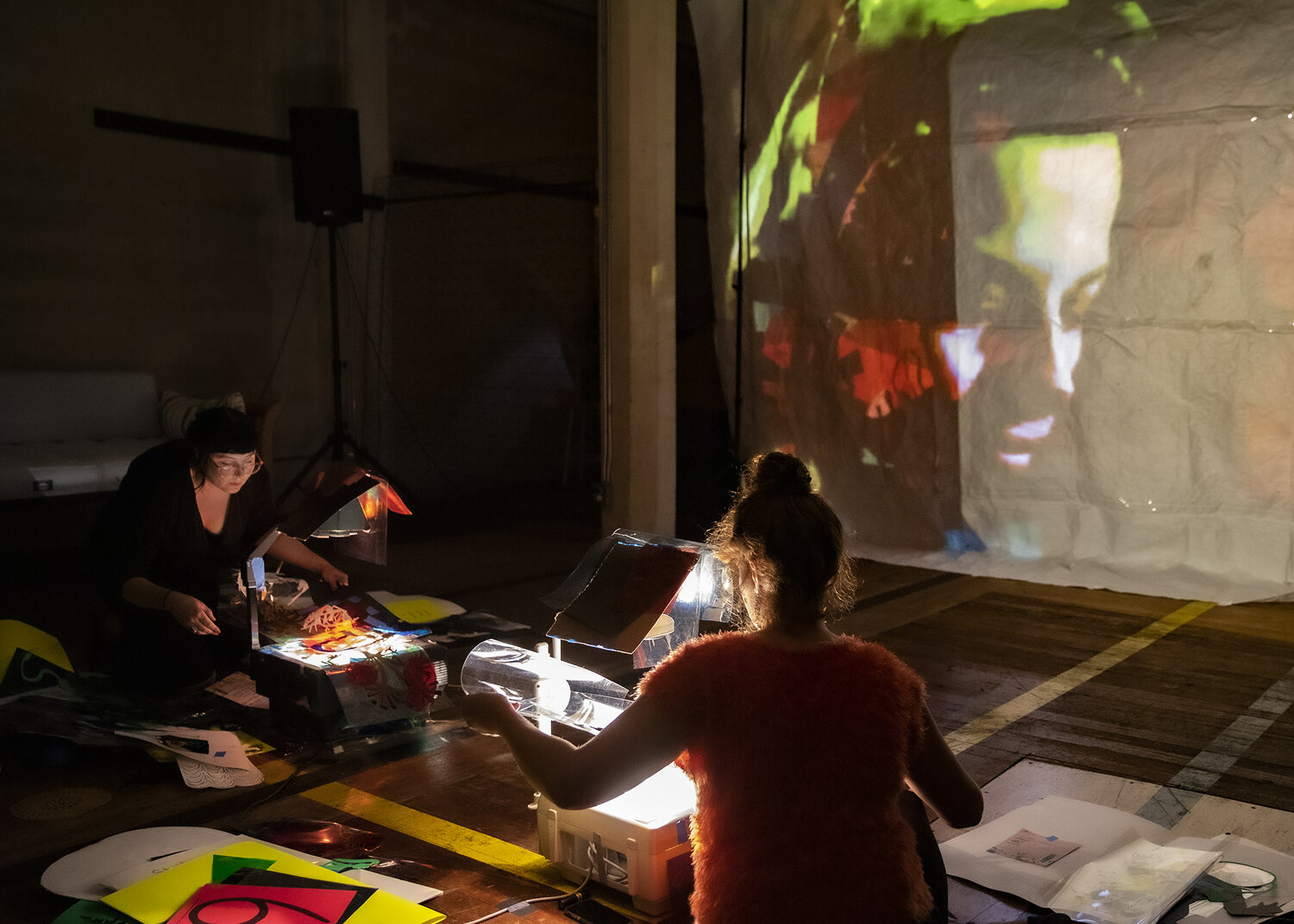 ACT II: Facing West Shadows: Lysistrata is a multi-channel visual and audio installation created with projected hand-made animation, puppets, and cast shadows. It takes its title from an Ancient Greek Theatre Tragi-Comedy by Aristophanes, which tells a tale of a group of women who end the ongoing decades-long Peloponnesian War between Athens and Sparta to create peace between endlessly warring factions.
