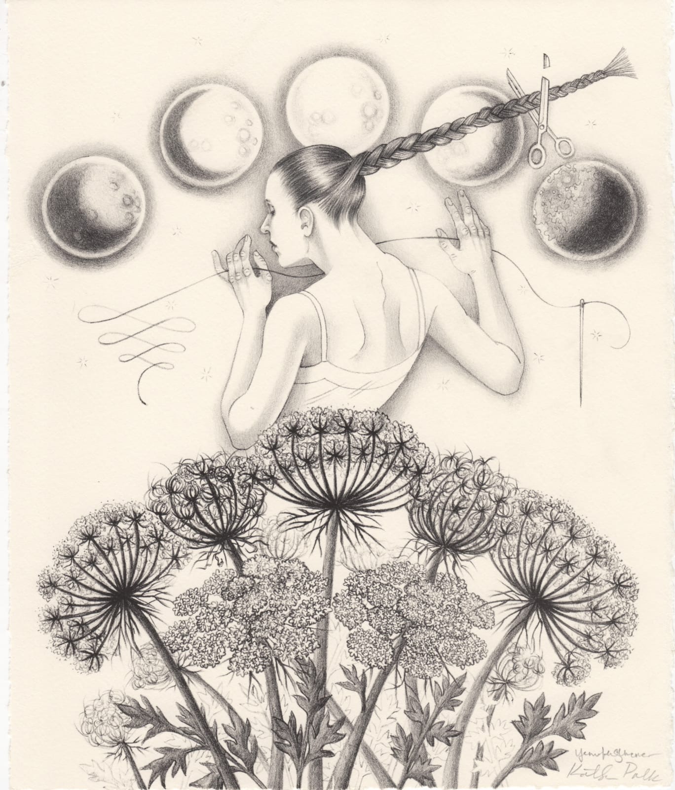 Kathryn Polk is an artist originally from Memphis, TN who now lives outside Bloomington, IN. Kathryn uses the medium of printmaking to create narrative drawings. A visual storyteller, her imagery is based on the women in her family navigating their lives through work, relationships, and day-to-day survival. Polk’s powerful and intricately drawn lithographs depict personal iconography through the lens of her Southern Heritage and strict religious upbringing during the 1950’s and 60’s